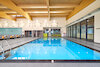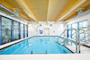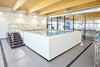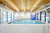 The Aquamore Spinea also includes a physiotherapy pool dedicated for use in rehabilitation. The pool is equipped with the exclusive Myrtha Soft Floor bottom that cushions shocks and is the perfect choice for a rehab pool. The warmer water in this pool also makes it ideal for neonatal and pre-natal water classes. In addition to similar structural features and Myrtha technology found in the other two pools, the rehab pool is also outfitted with seats that facilitate entry into the water for people with mobility difficulties. The pool also offers hydromassage jets for the muscles of the lower limbs and has an anchor for surgical tubing that can be useful for various types of water exercises. A further special feature of the project is the pool deck, which has been covered with Myrtha Pools' Touch membrane. The exclusive surface is non-slip and comfortable to walk on, helping to ensure safety even after the exercise or rehabilitation program has ended.