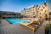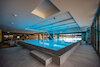 Divided into two parts, one indoor and one outdoor, the pool can be used all year round. Designed and built to offer maximum comfort and relaxation to hotel guests, the presence of whirlpool benches, ladders and lighting constitute the pool's accessories.