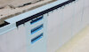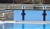 10 lanes: The pool measures 51x25x2 m. Initially 50 m long, it was lengthened to include a movable bulkhead. To accommodate the movable bulkhead one end of the pool had to be demolished and replaced with Myrtha panels. The pool has three overflow sides and an end with ceramic competition headwall. It is equipped with a movable bulkhead, 8 sets of recessed steps, starting blocks, mosaic lane markings, plastic mosaic targets and Ceramic 2 style Myrtha gutters.
