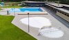 The swimming pools, designed and produced by Myrtha Pools, are a 25m competition pool, provided with six Myrtha Track Start starting blocks, and a freeform pool for babies that measures 20x13x(0,30-0,60)m. Both are outdoor and naturally heated: 28° for the main one and 32-33° for the babies' one. The pools are all built with Myrtha technology, an exclusive technology which guarantees low maintenance costs, long life of the pool and short installation times.