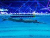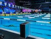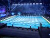 For this significant occasion, Myrtha Pools built a warm-up pool and a competition pool in the arena space, where the hotel usually hosts grand events and boxing matches. The competition pool was designed with a 21 m acrylic wall with a vanishing edge: something no one had ever seen before during such important events.