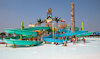 In 2004 it enlarged with a water area, called Mirabilandia Beach, as big American parks, which often combine dry with wet entertainment. The big lagoon built by Myrtha Pools over 3.000 sq.m surface! It was awarded with Parksmania Award 2004 as best waterpark. It has, in the middle, a broad castle for children with slides, fountains and other toys. The palms and white sand surrounding the lagoon are fascinating, and give the park a Caribbean scenario.