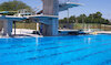 The diving pool features two one-meter and two three-meter springboards as well as one, three, five, seven-and-a-half and 10 meter platforms. This pool also features an air safety cushion for diving, a system that produces an air cushion which allows the diver to practice even the most difficult of dives without risk of injury when entering the water. The facility includes a 115 sq. ft. whirlpool spa pool, equipped with hydrotherapy jets.