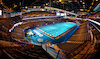 In just 10 days, Myrtha Pools have employed its industry-leading, exclusive technology to construct the Trials main competition and warm-up pools, covering the lower bowl of the CenturyLink Center with more than 40 tons of Myrtha materials, filled with 1.7 gallons of water.