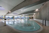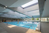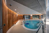 This multipurpose aquatic facility offers various swimming pools built with Myrtha modular technology. The largest is an outdoor vessel measuring 50 metres with ten lanes. There is a second indoor pool at 25 metres with eight lanes. Both can be heated as needed. In addition to those pools, there are one for relaxation and two more for children. One is designed for learn to swim programming, and there’s also a splash pad with water toys and slides attractions. The complex also includes modern gyms and changing rooms.