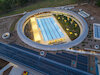 The Parramatta Aquatic Center (PAC) was designed with a clear goal: to prioritise sustainability and accessibility, ensuring minimal environmental impact in a green area of the city and providing universal access to all citizens through the use of ramps for entry into the water. The main building is surrounded by greenery, with the planting of 80,000 trees, shrubs, and various plants, and the roof is covered with 358 solar panels for electricity generation.