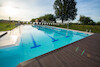 Myrtha Pools built the outdoor pools at the San Nicolò centre. This project features a 60-metre pool divided into a four-lane swimming area and a wellness area.