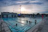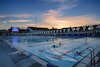 The new aquatic facility includes two Myrtha pools, one for swimming and water polo competitions and a learn-to-swim pool for kids. The new center includes also a community clubhouse with a reception area, locker room, showers, changing areas, restrooms, and storage space.
