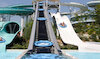 Description: attraction consisting of 2 family slides: one with an average slope of 17%, almost 100m long, and one with 10% slope, long 180 m. The slide is on 4-seat rafts. The attraction includes one conveyor to take the heavy rafts to the slides starting point.