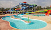 El parque, diseñado por la empresa estadounidense WTI, especialista mundial en parques acuáticos, incluye una enorme piscina de olas, ríos, más de 40 toboganes y atracciones de última generación, realmente impresionantes, y una enorme zona infantil con piscinas y zonas de chapoteo. También hay una atracción especial de surf con cuatro posiciones paralelas, única en el mundo.