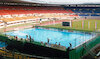 The time available for the installation was very short, being the stadium already booked for a rock concert till July 9th; besides this, it was not possible to build masonry works, since the surface of the athletics track had to be safely preserved.Anyway, the installation was completed by July 22nd. The pool was equipped with complete water filtration and disinfection system, heating system and circular balance tank. A sand floor was positioned on a geotextile surface to preserve the athletics track.